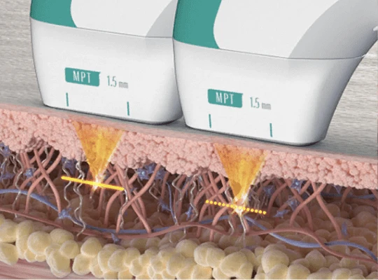 СМАС-лифтинг лица в клинике VIBE проводится аппаратом Ultraformer MPT с ультразвуковыми насадками-датчиками высокого разрешения с разной глубиной проникновения ультразвука, температурой и диаметром точки нагрева.