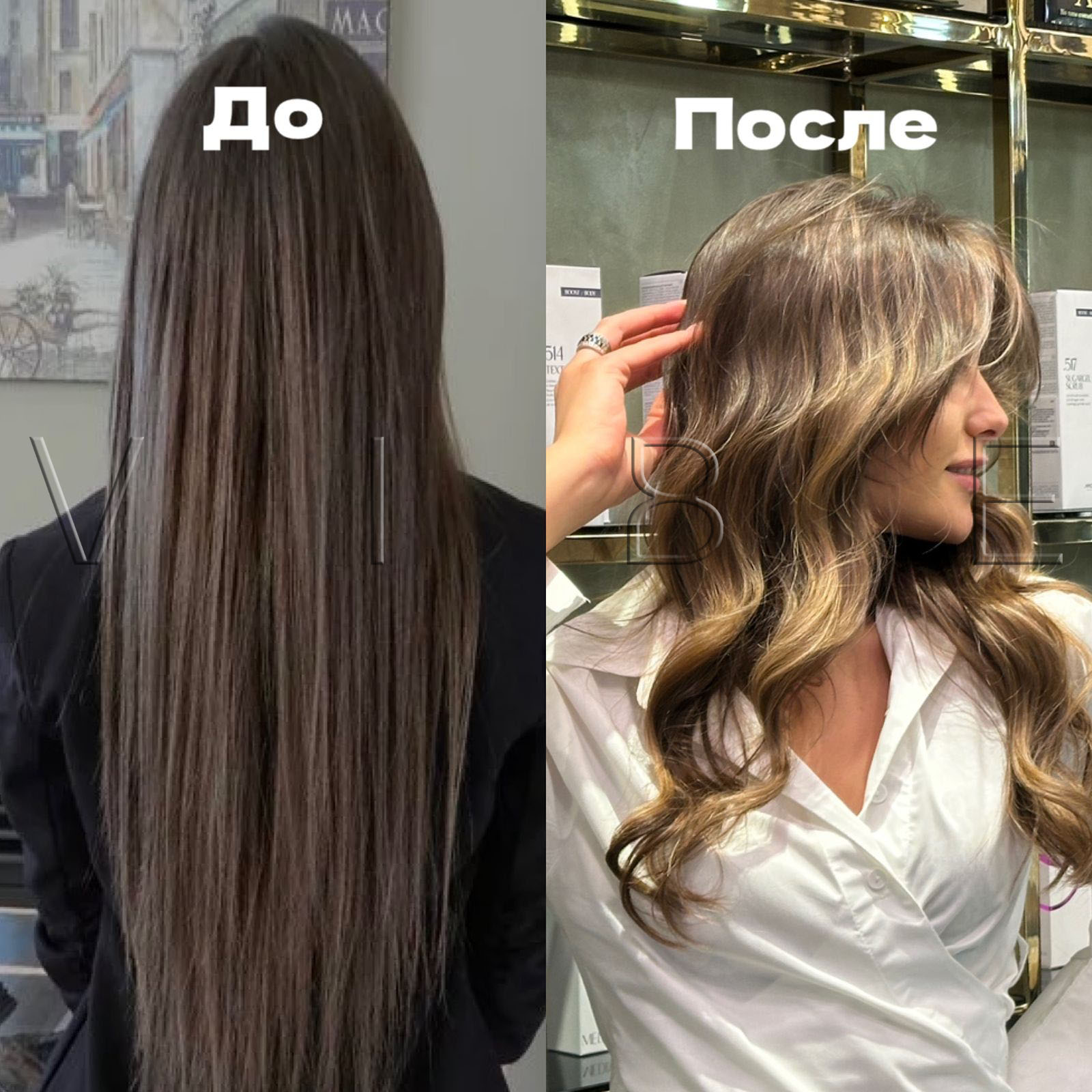 - Результат: создает мягкий, естественный переход цвета, без резких линий, контрастов. Выглядит так, как будто волосы выгорели на солнце, с естественным осветлением по краям. Подходит для тех, кто хочет освежить цвет, добавить объем, текстуру, без кардинальных изменений.